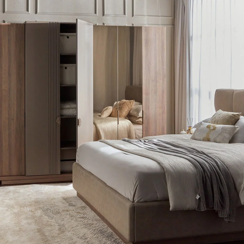تعتبر خزانة الملابس جزءًا لا يتجزأ من أثاث غرفة النوم. تتميز هذه الخزانة بأنها مزودة بأدراج مميزة تساعد في تنظيم الملابس بشكل أفضل.