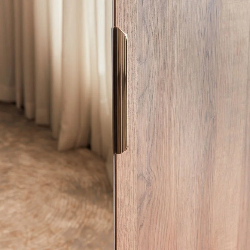 هيكل مصنع من خشبي هندسي وخشب زان روماني عالي الجودة مع لمسة من الزجاج المقوى المقاوم للصدمات.