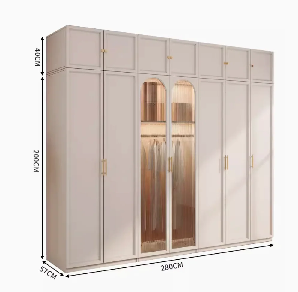 تعد خيارًا مثاليًا لمن يبحثون عن خزانة كبيرة الحجم، مصنوعة من خشب هندسي وخشب زان روماني عالي الجودة. تتميز بتصميمها الذكي الذي يوفر مساحة الأرضية ويزيد من مساحة التخزين، مما يجعل تخزين الملابس الموسمية أسهل من أي وقت مضى. تأتي الخزانة مزودة بمقبض معدني عالي الجودة وباب زجاجي يضفي لمسة من الأناقة والجمال على التصميم.