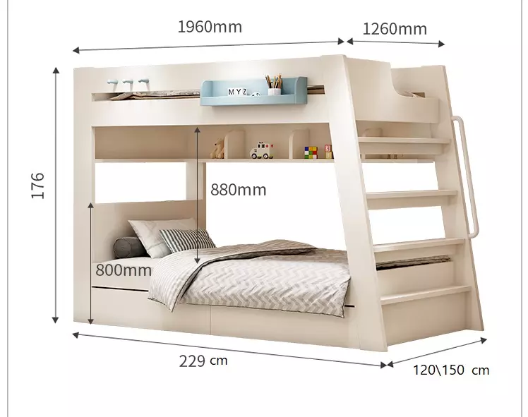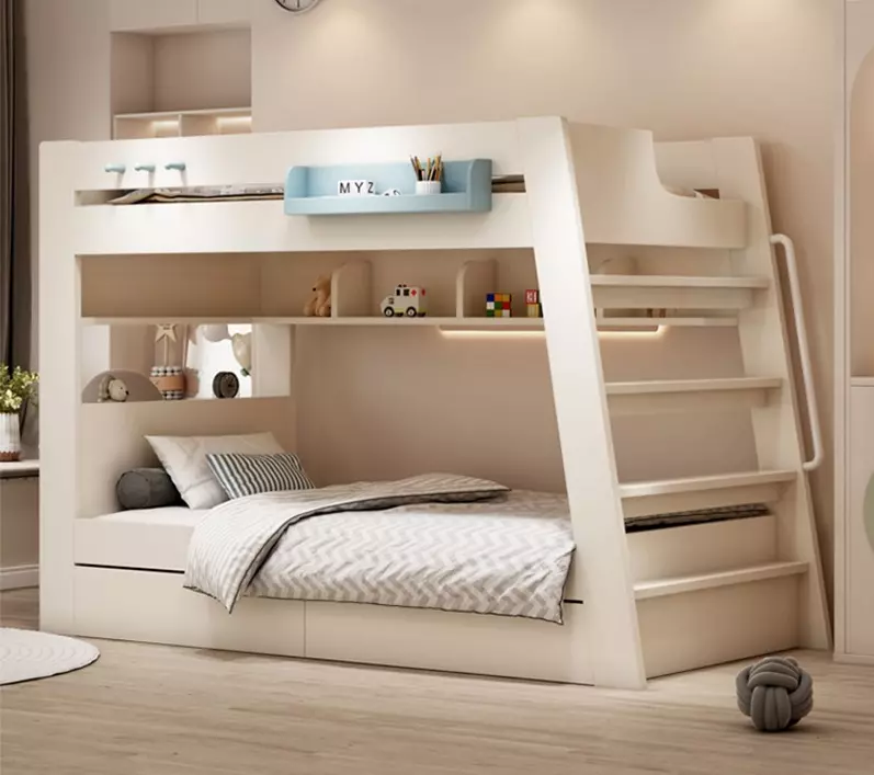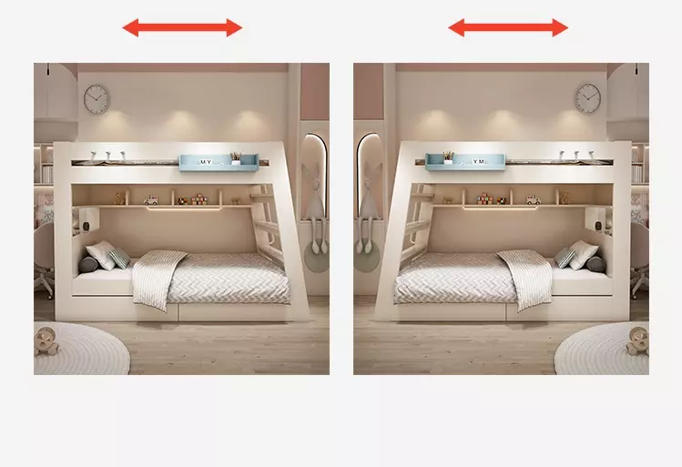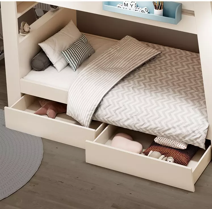 - درج سفلي كبير يوفر مساحة تخزين إضافية للألعاب أو الملابس، أدراج مدمجة في السرير السفلي تساعد في الحفاظ على الغرفة مرتبة ومنظمة.