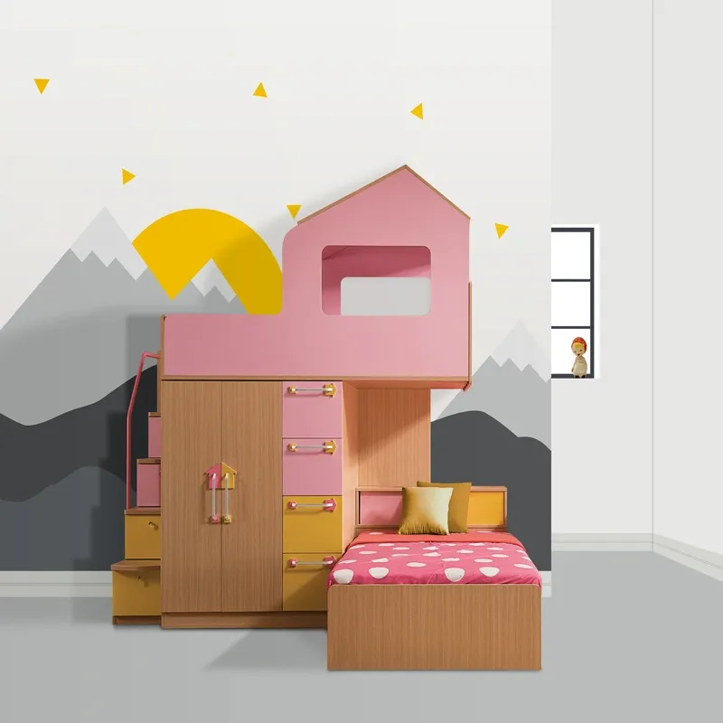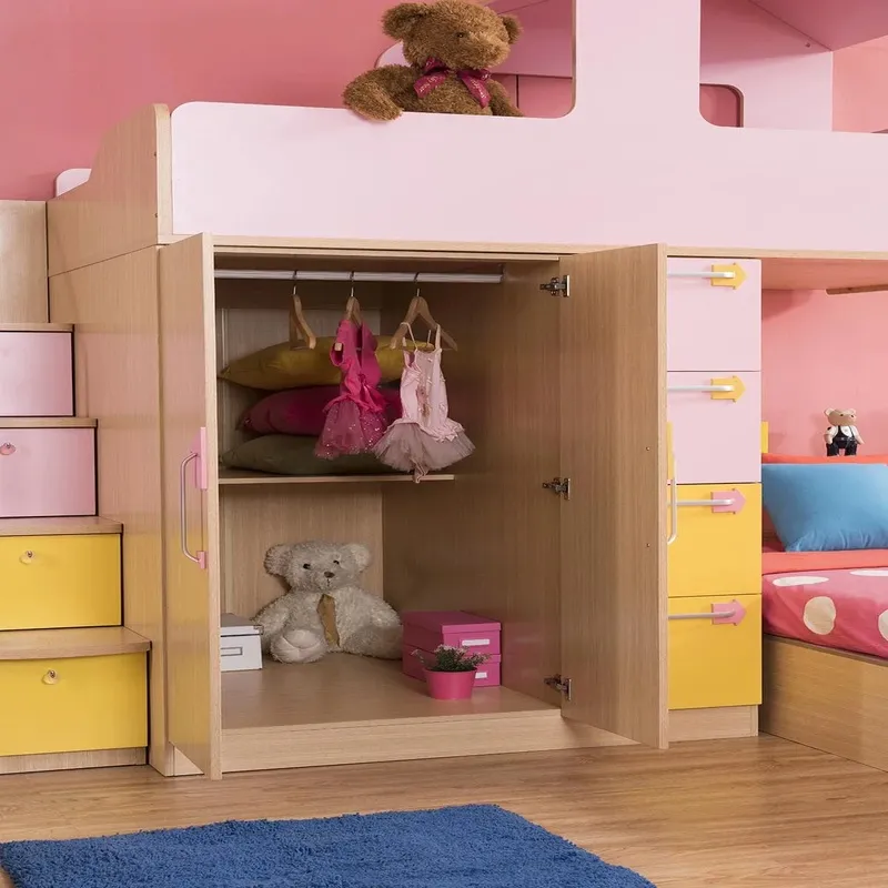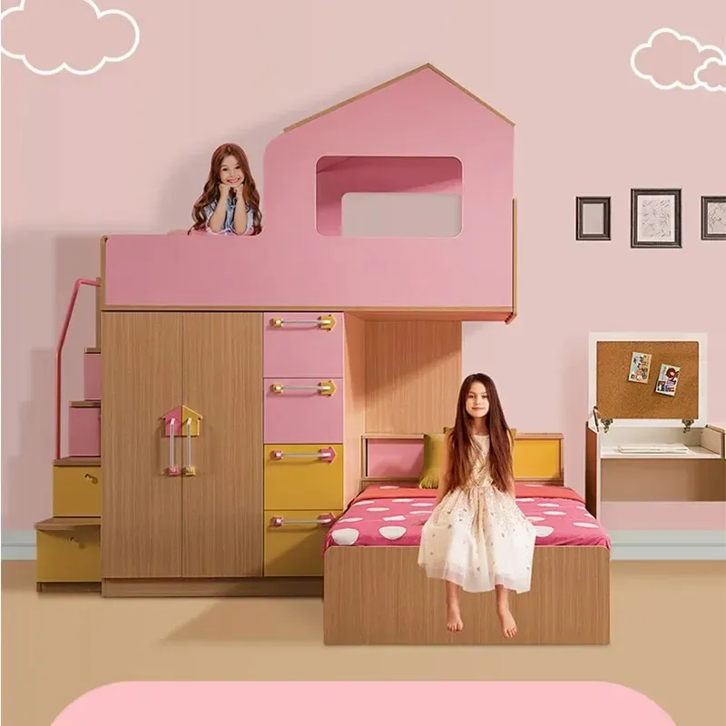 سرير دورين للبنات مع خزانة وأدراج مميزة – تصميم عملي وأنيق لغرفة مثالية