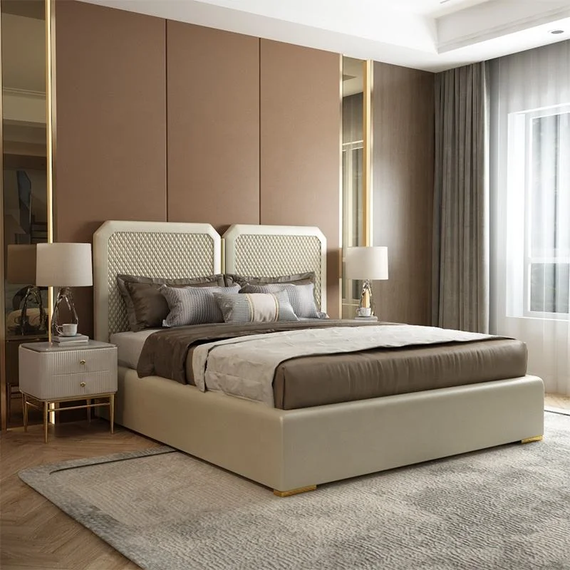 ارتقِ بغرفة نومك في السعودية مع سرير فندقي فاخر من ماستر روم! تصميم راقي يجمع الأناقة المطلقة بجلد فاخر وهيكل متين. ظهر مبطن بتفاصيل هندسية فريدة يمنحك راحة وجمالاً استثنائياً. قطعة ديكور فخمة تجسد الرقي.