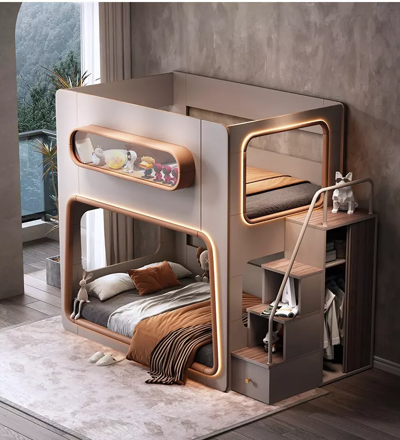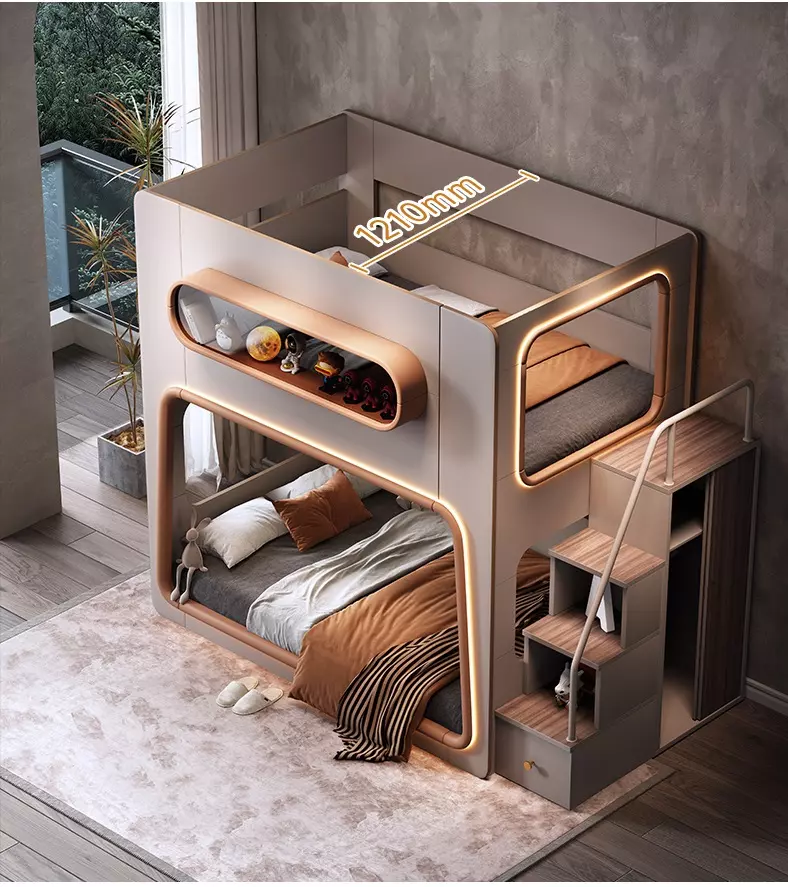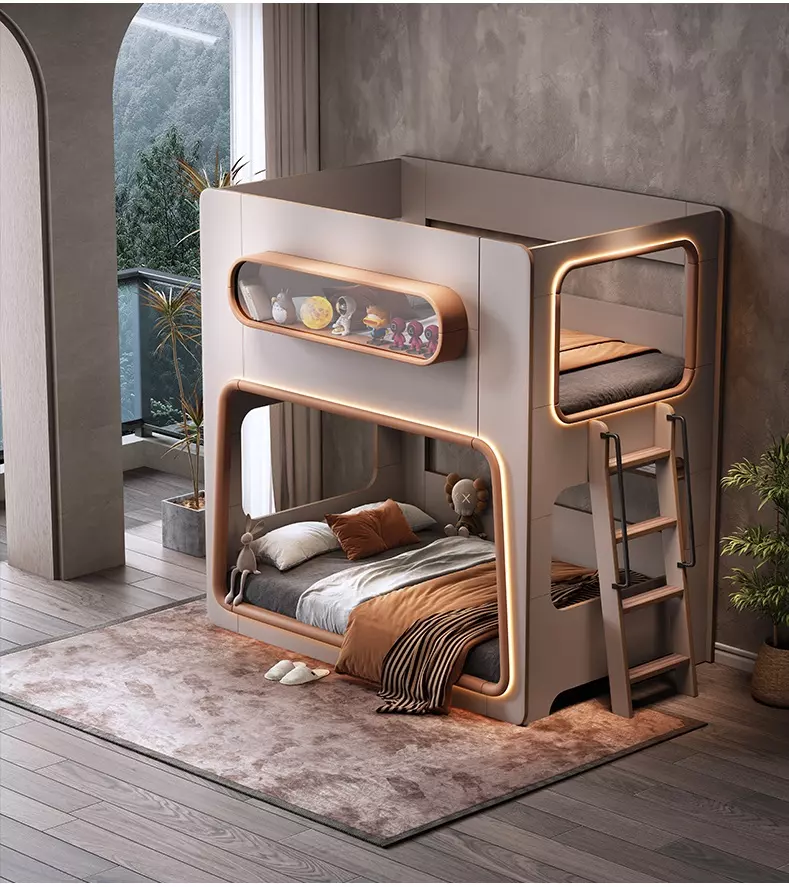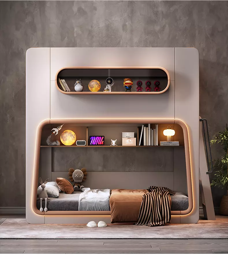 اجعل غرفة نوم أطفالك مكانًا للخيال والمغامرة مع سرير نوم اطفال بتصميم فضائي. يتميز السرير بتفاصيل جذابة تضفي لمسة من الفضاء والابتكار على الغرفة.