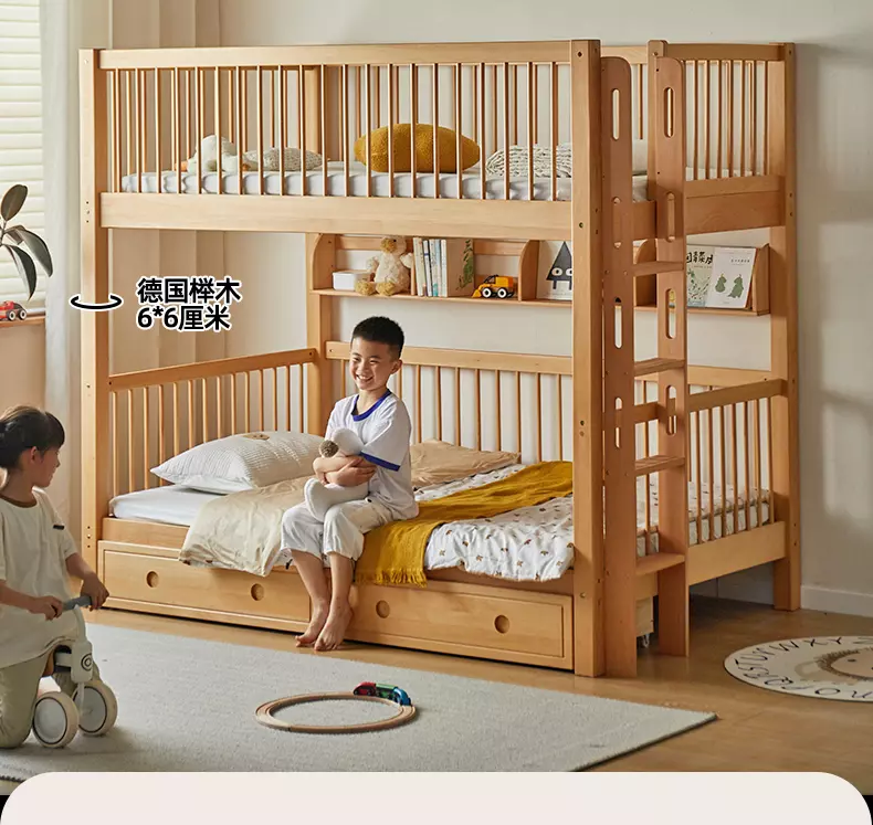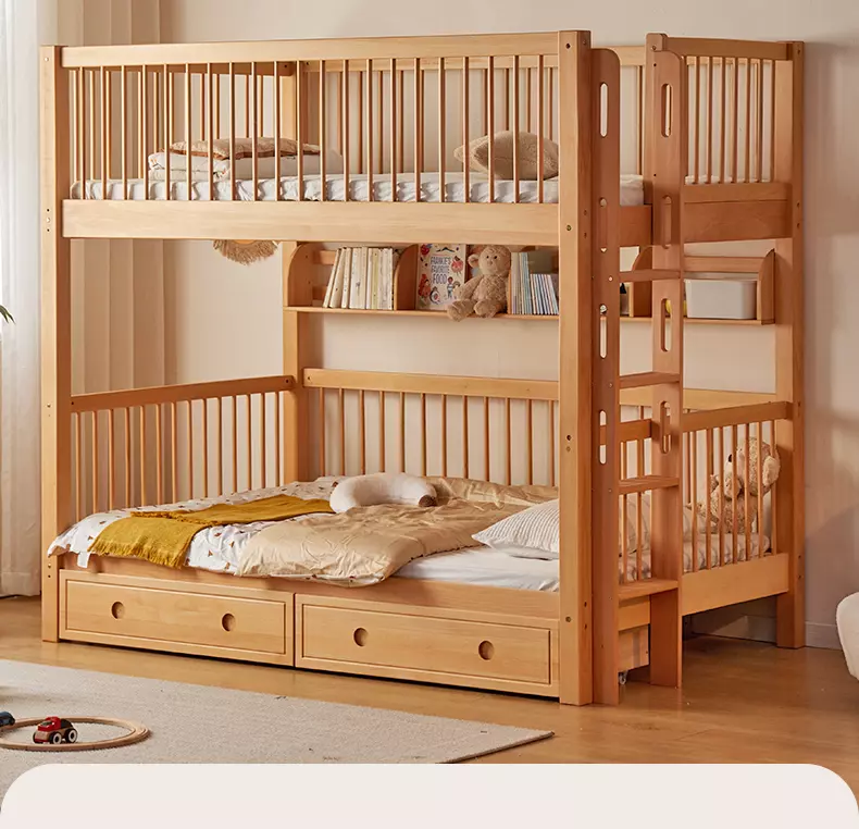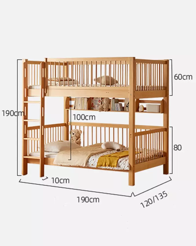 اكتشف جمال وراحة سرير نوم الأطفال المثالي لغرفة طفلك. يتميز هذا السرير بتصميم عصري وجذاب مع دورين ودرج لتخزين إضافي، مما يوفر المساحة. مصنوع من خشب هندسي وخشب زان روماني عالي الجودة لضمان المتانة. متوفر بمقاسين  مع لون خشبي طبيعي يضفي أناقة ودفء. السرير سهل التنظيف ويأتي بضمان سنتين ضد عيوب التصنيع في دول مجلس التعاون الخليجي. إضافة مثالية لغرفة نوم طفلك.