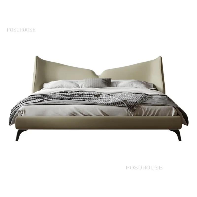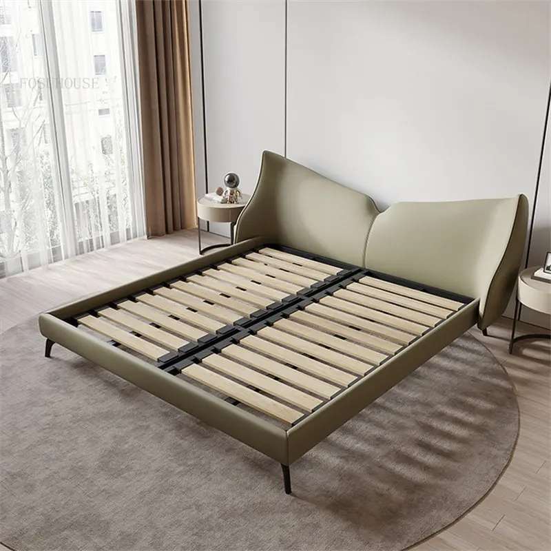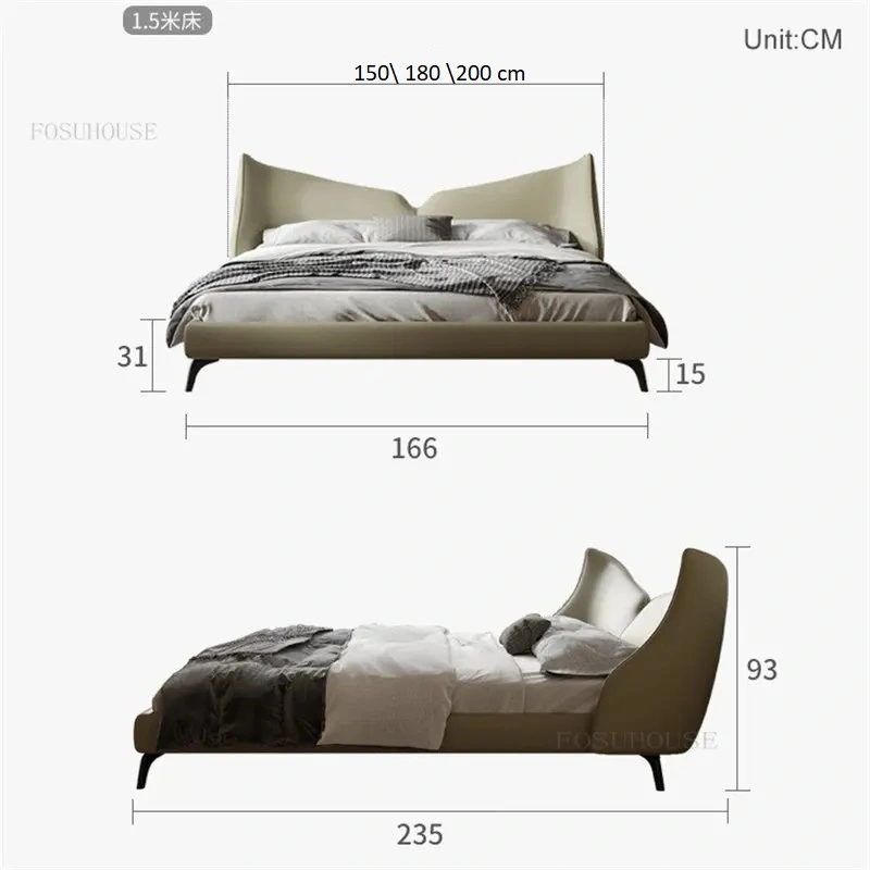 سرير نوم مزدوج بتصميم مميز يضفي لمسة أنيقة على غرفة النوم. مصنوع من خامات عالية الجودة مثل الخشب الهندسي والزان الروماني ومغطى بجلد فاخر. متوفر بمقاسات مختلفة وألوان متعددة، مع ضمان لمدة سنتين.