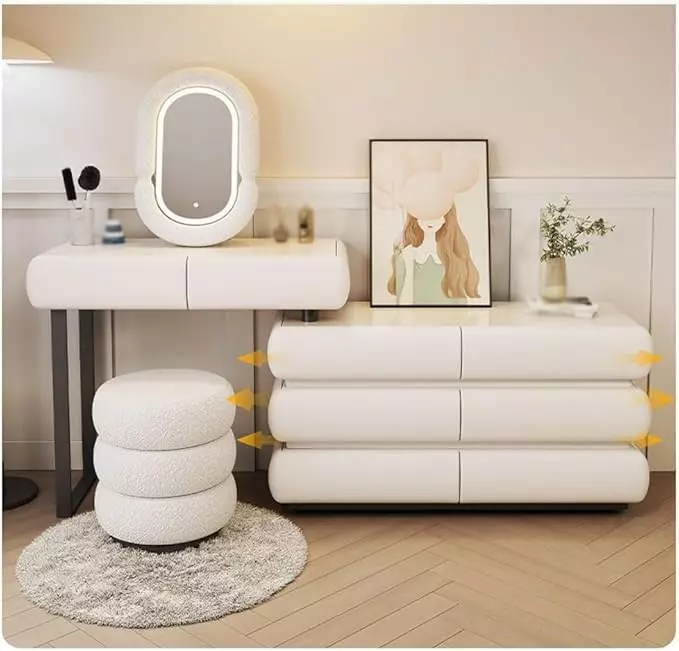 تحتاج كل غرفة نوم إلى قطعة تجمع بين الجمال والوظيفة، وطاولة التسريحة هذه تضيف لمسة من الفخامة إلى مساحتك. تتميز بتصميمها المميز الذي يدمج بين الأناقة والعملية، مما يجعلها مثالية لترتيب مستلزماتك اليومية.