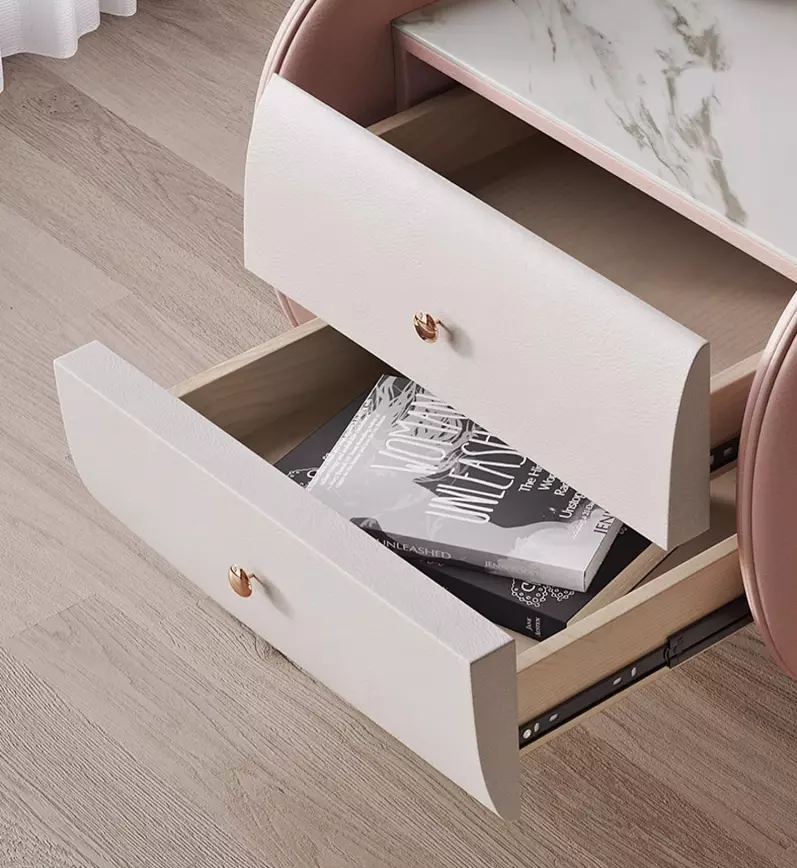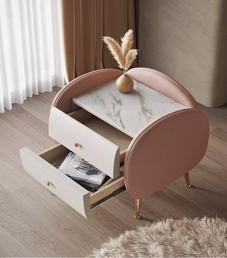 اضافة لمسة من الأناقة والراحة لغرفة نومك أصبح أكثر سهولة مع هذه الطاولة الجانبية الفريدة. بتصميم يجمع بين الجمال العملي والجودة العالية، تعد هذه الطاولة اختيارًا مثاليًا للباحثين عن التميز في تفاصيل ديكور منازلهم.