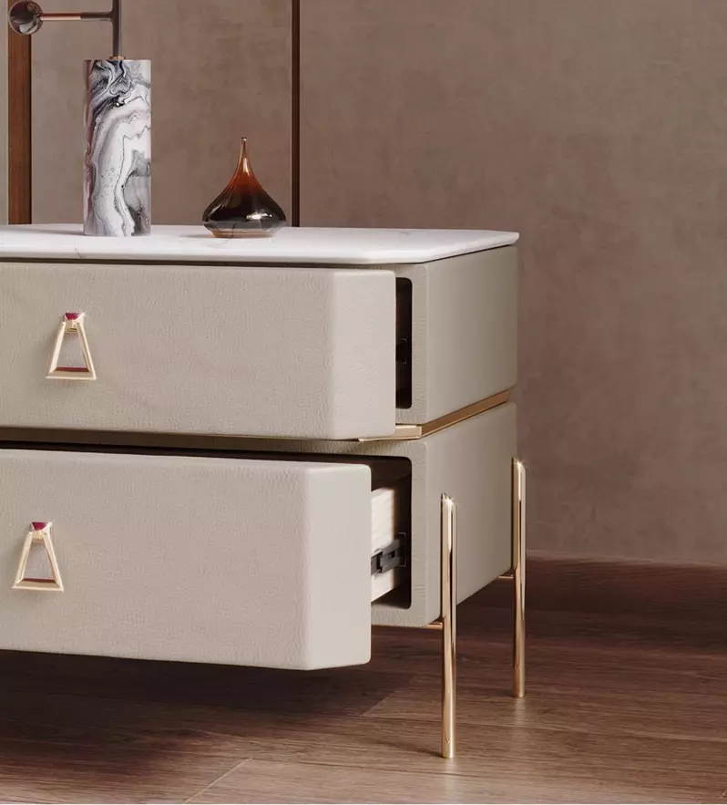 كمودينو درجين مودرن للسرير من ماستر رووم يجي بأعلى جودة وكأنه لمسه فنية من أفخم بيوت الأثاث العالمية وهو بنفس الجودة لأن الخامات كلها مستوردة من أوروبا والتنفيذ دقيق بإشراف هندسي احترافي وهذا اللي يخل القطعة بمتانة وفخامة تلبيض وجهك، هذا اللي تستحقه لا تقبل بأقل من كذا واطلبه الحين مع ماستر رووم.