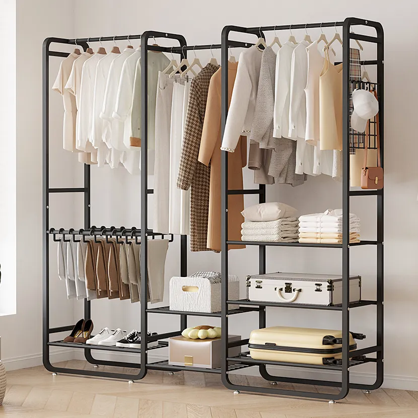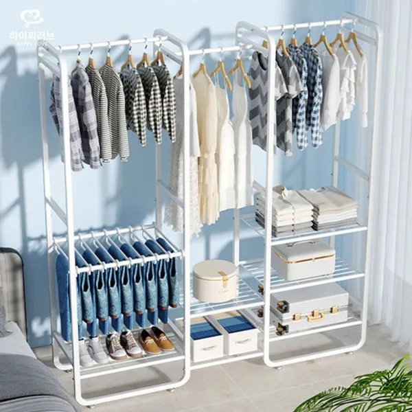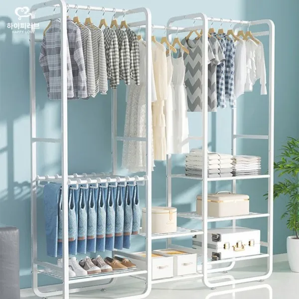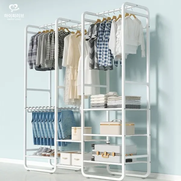 علاقة ملابس مزدوجة متعددة الأرفف والخزانات