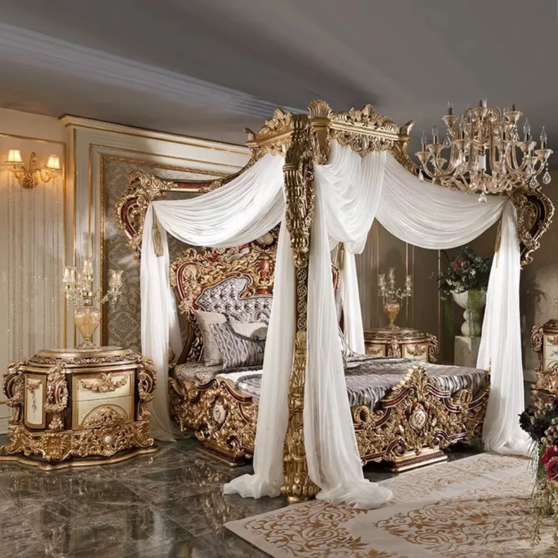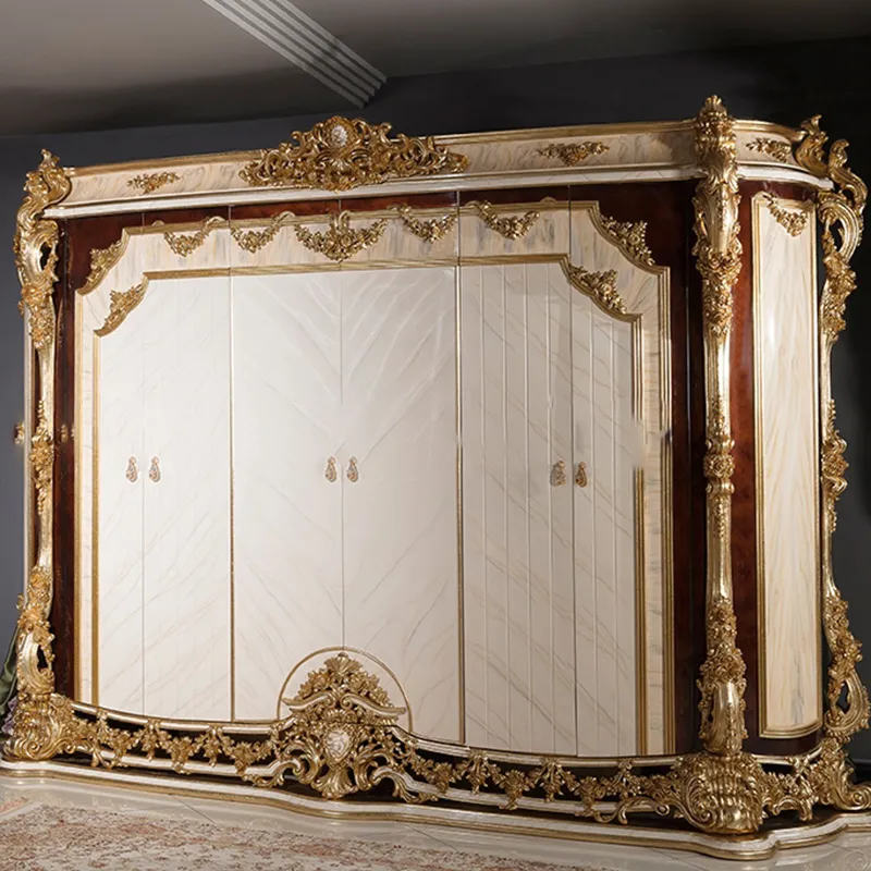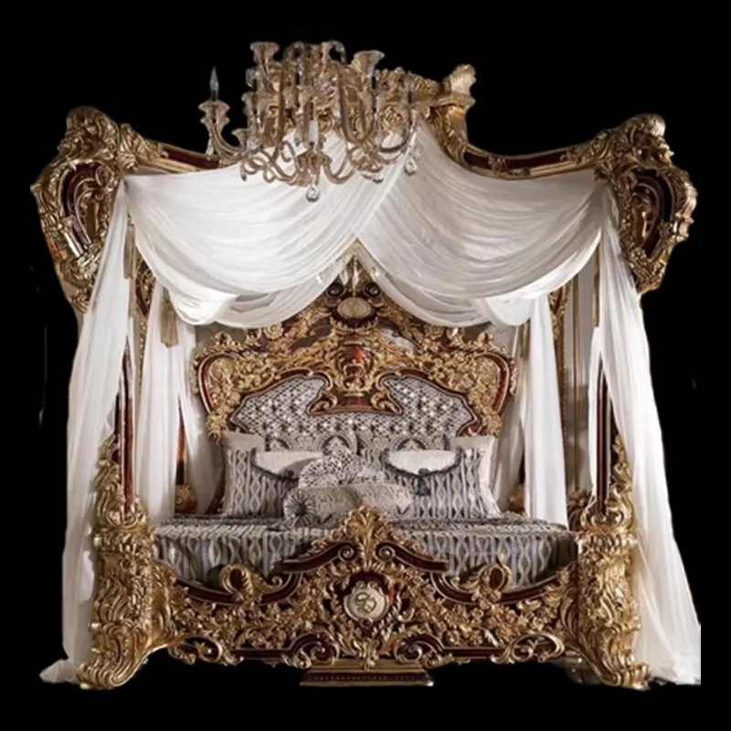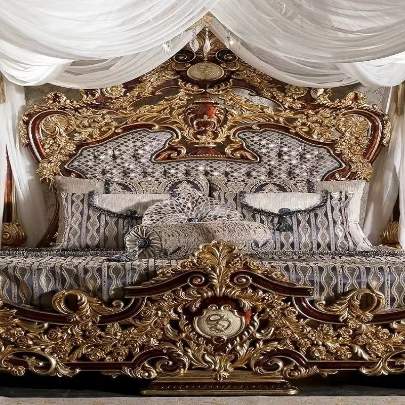 تم تصنيع الهيكل من خشب هندسي متين وخشب زان روماني عالي الجودة، المعروف بصلابته ومتانته. أضيفت لمسات من الستيل المذهب الصلب الذي يمنح بريقًا وأناقة لا تضاهى. أما السرير، فقد تم تغطية ظهره بطبقة من الجلد الإيطالي الفاخر المبطن بالإسفنج عالي الكثافة ليوفر مرونة وراحة مثالية تدوم لسنوات طويلة.