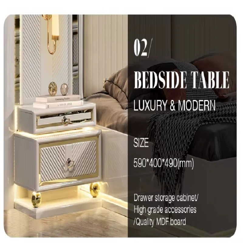 تتكون الغرفة من هيكل صُنع بعناية من الخشب الهندسي وخشب الزان الروماني عالي الجودة المعروف بمتانته وقوة تحمله. أما السرير فقد صُمم بظهر مغطى بطبقة أنيقة من الجلد الفاخر، مبطّن بإسفنج عالي الكثافة والمرونة لضمان أقصى درجات الراحة أثناء النوم.