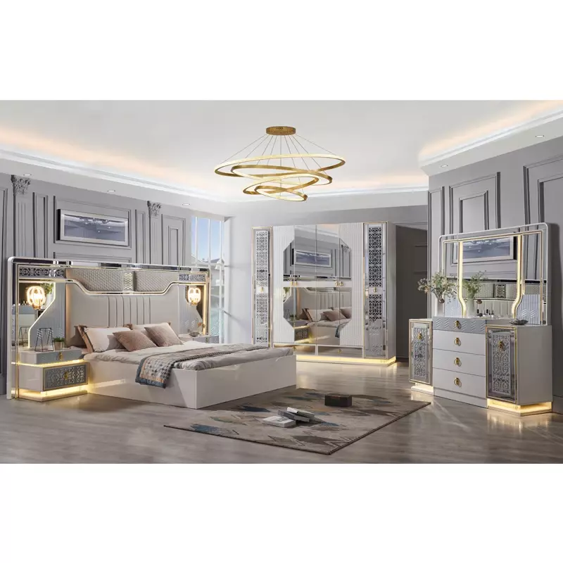 - طقم متكامل يعكس ذوقك يضم كل ما تحتاجه لغرفة عصرية، مزود بإضاءات تضفي شعورًا بالرفاهية.