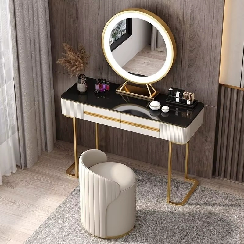 اجعلي لحظات العناية الشخصية أكثر راحة وأناقة مع كرسي التسريحة الدائري الفاخر الذي يجمع بين التصميم العملي واللمسة الجمالية الراقية. تم ابتكاره ليناسب الأذواق الخليجية الرفيعة، ويضيف لمسة من الفخامة على غرف النوم العصرية في السعودية ودول الخليج.