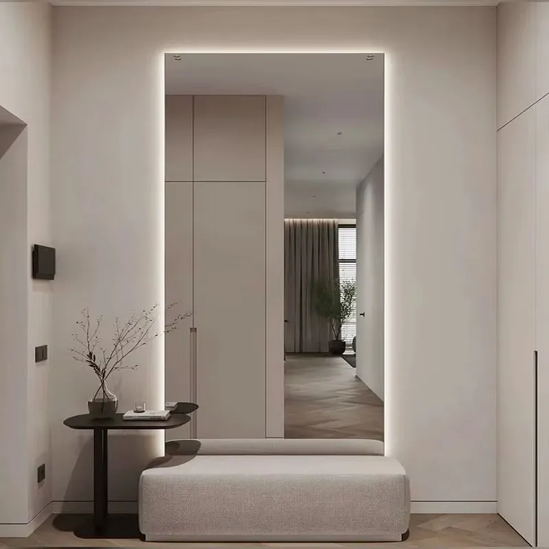 المرايا تأتي بتصميم طولي أنيق مع إضاءة خلفية تضيف إحساسًا بالرحابة والفخامة في المكان. يمكن استخدامها في غرف النوم، غرف المعيشة أو حتى في مداخل المنازل لتعكس أسلوبًا راقيًا يعكس ذوقك الرفيع.