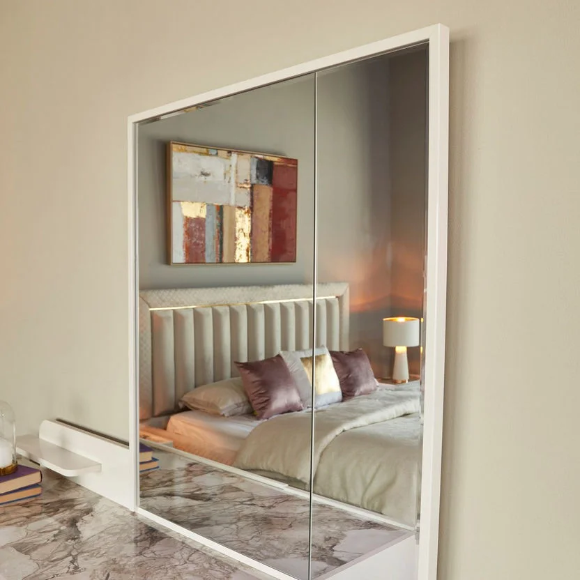 - القطع: سرير، طاولتين جانبيتين ، طاولة تسريحة مع مرآة.