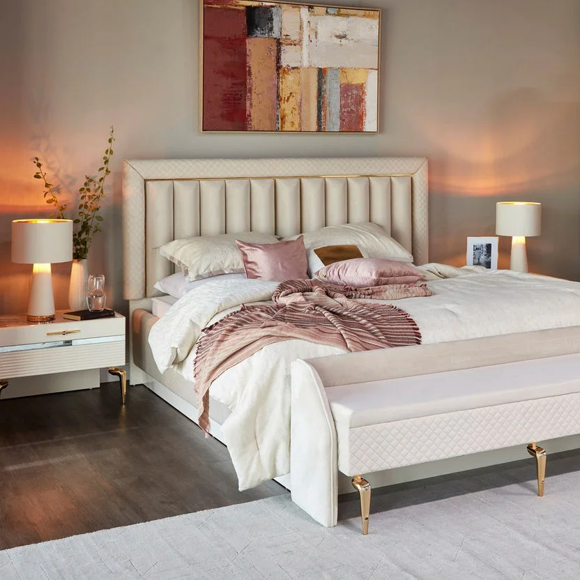 - يتميز طقم غرف نوم جديدة بشكله الأنيق والمتناسق الذي يمنحك شعورًا بالرفاهية والفخامة في المكان.