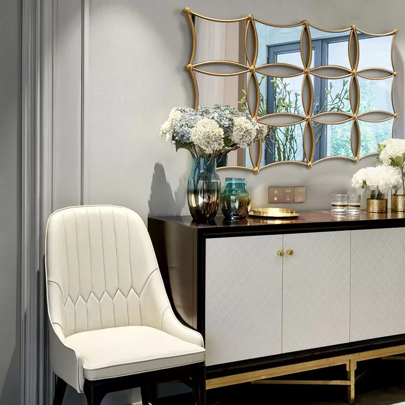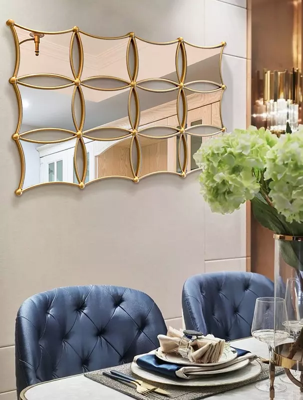 لا شك أن تزيين الحوائط يلعب دورًا كبيرًا في تحديد طابع الغرفة. استخدام ديكور مرايا ذهبي فاخر على الحائط يمكن أن يخلق نقطة تركيز جذابة. سواء كان في غرفة المعيشة، غرفة النوم أو حتى الممر، فإن المرايا الذهبية تضيف عمقًا ولمسة عصرية للمكان.