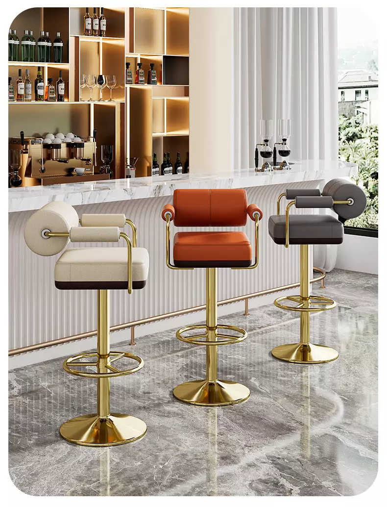 كرسي بار: يجمع بين الأناقة والراحة في تصميم فريد. مصنوع من مواد عالية الجودة مثل الجلد الإيطالي والمعدن المتين، يوفر الكرسي الراحة والدعم أثناء الجلوس. بتصميمه الأنيق والمتين، يعزز ديكور غرفة الطعام بلمسة من الفخامة