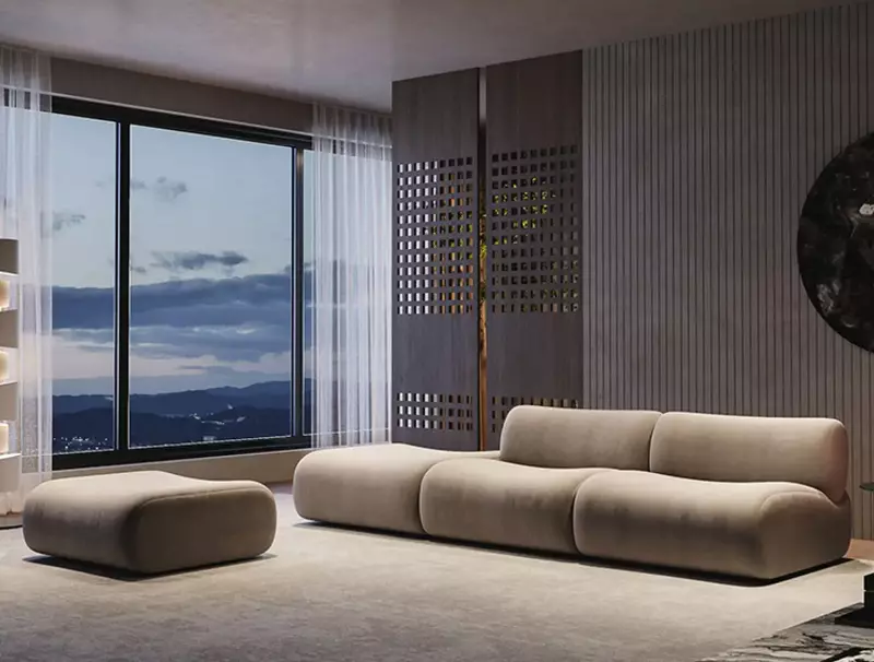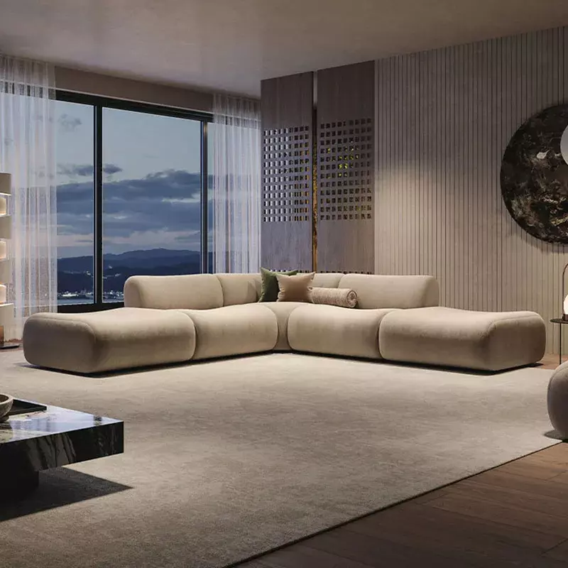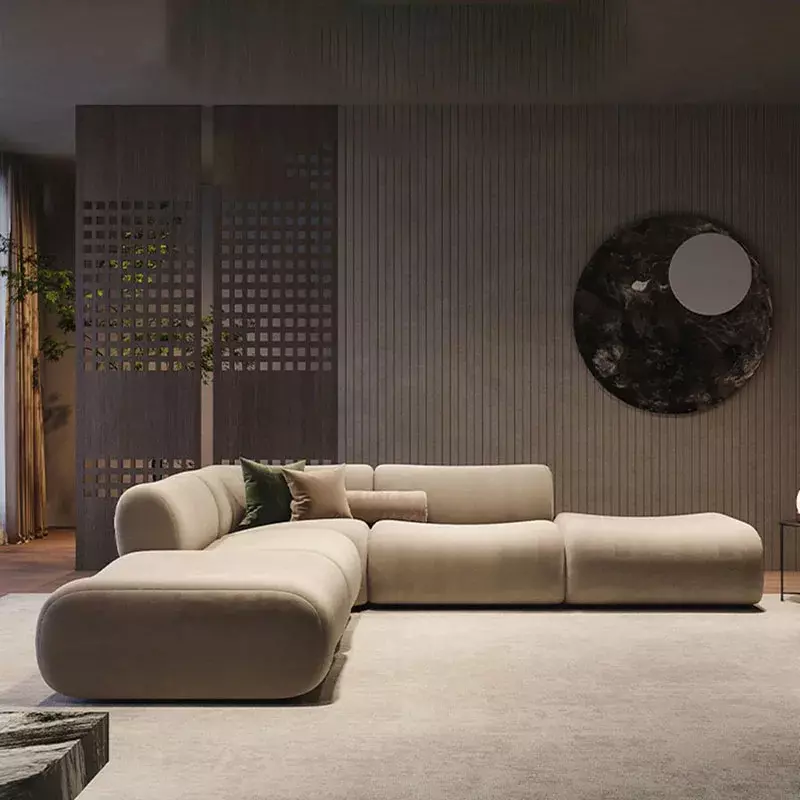 يتميز كنب الزاوية بتصميم منخفض يأخذ شكل دائري يمنح غرفة المعيشة أو الصالة مظهر غاية في الأناقة.