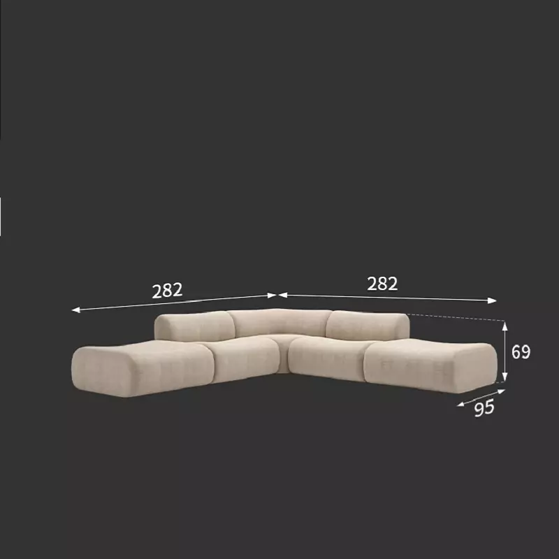 مقاسات الكنب: الارتفاع (سم): 69، العمق (سم): 282، العرض (سم): 282.