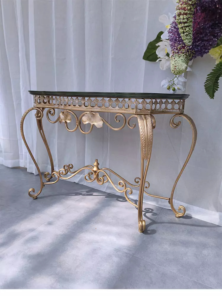 طاولة الكونسول هذه تتميز بتصميمها العصري الذي يتناسب مع مختلف الأنماط الديكورية. تم تصنيع الهيكل من معدن قوي وعالي الجودة لضمان المتانة والاستدامة على المدى الطويل.