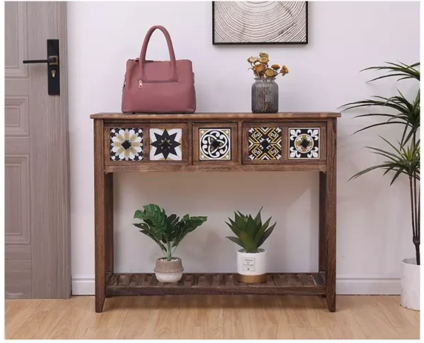 طاولة الكونسول تعتبر مثالية لتزيين مدخل المنزل. يمكن استخدامها لوضع ديكورات جميلة مثل الفازات أو الإطارات العائلية، مما يعطي انطباعًا أوليًا رائعًا لضيوفك.يمكنك وضع طاولة الكونسول في غرفة المعيشة لإضافة لمسة من الفخامة. كما أنها عملية جدًا حيث يمكنك تنظيفها بمسحة رقيقة فقط عند الحاجة، مما يجعلها مثالية للحفاظ على نظافة وجمال منزلك.
