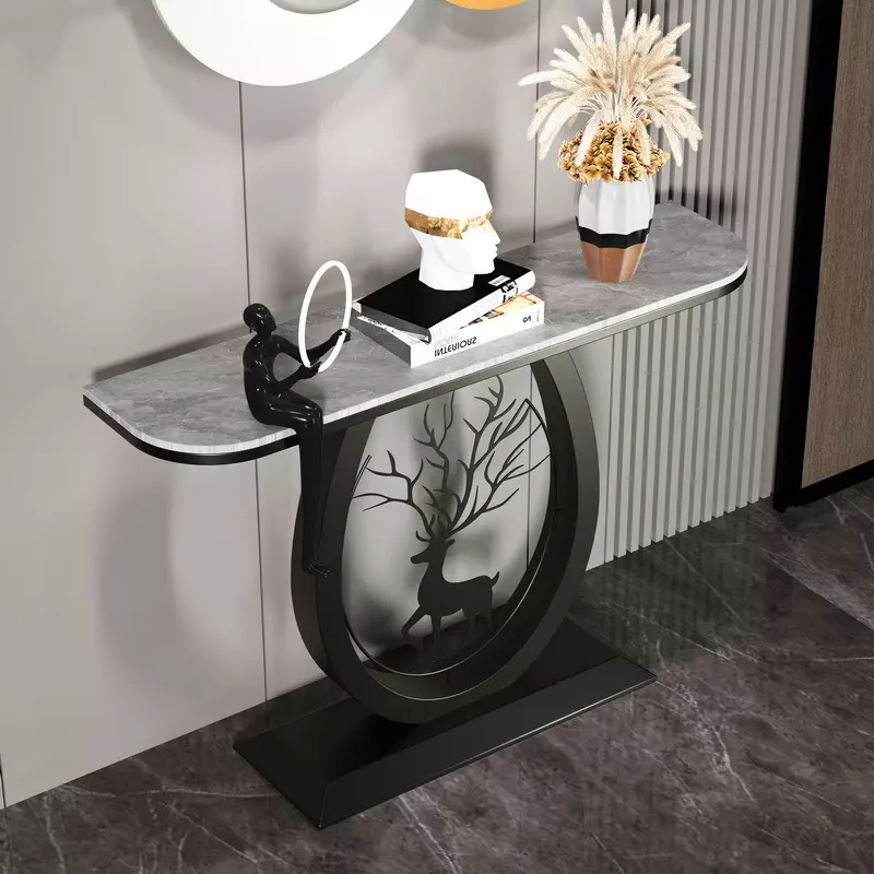 اقتني هذا الكونسول المميز لإضافة لمسة فريدة إلى غرفة المعيشة. يتميز التصميم بسطح من الرخام الفاخر وهيكل معدني على شكل غزال، مما يمنح المنزل لمسة فنية راقية. يمكنك تنظيف الكونسول بمسحة رقيقة فقط عند الحاجة.