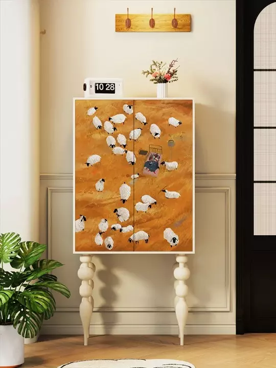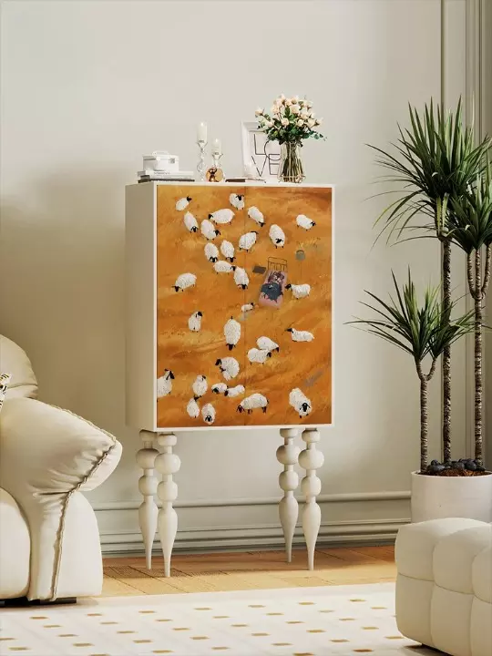 خزانة تخزين خشبية تمتاز بتصميم فرنسي أنيق وعصري، تضيف لمسة رائعة إلى ديكور غرفة المعيشة الخاصة بك. إنها خيار مثالي لمن يبحثون عن توازن بين الأناقة والوظائف العملية في الأثاث المنزلي.