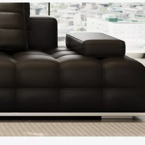 كنب صالة عصري بتصميم أنيق يجمع بين الفخامة والراحة. مصنوع من خشب هندسي وخشب زان روماني عالي الجودة لضمان المتانة، مع حشوة إسفنجية مريحة وغطاء من جلد فاخر سهل التنظيف. القاعدة المعدنية القوية تضيف لمسة من الاستقرار والصلابة. يتميز بأبعاده المدروسة وتصميمه المودرن، مما يجعله إضافة مثالية لغرفة المعيشة. متوفر بألوان متعددة مع ضمان سنتين ضد عيوب التصنيع.