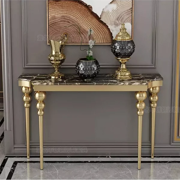 كونسول رخام فاخر يضفي لمسة من الأناقة والفخامة على منزلك. يتميز بتصميم عصري وأنيق مع سطح من الرخام عالي الجودة وهيكل معدني قوي. مثالي لتجميل مداخل المنزل أو غرفة المعيشة، يمكن استخدامه كطاولة كونسول أو طاولة مدخل لتنظيم الأغراض الصغيرة.