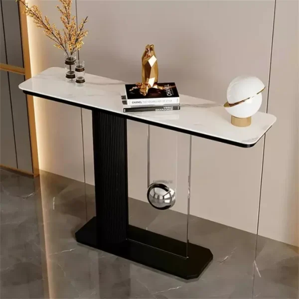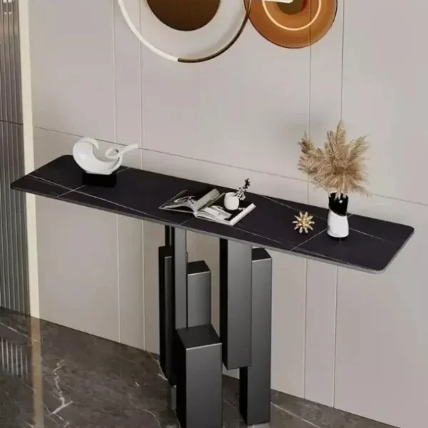 كونسول أنيق يجمع بين التصميم العصري والمواد الفاخرة، حيث يتميز بهيكل معدني قوي وسطح من الرخام عالي الجودة. مثالي لوضعه في مدخل المنزل أو غرفة المعيشة لإضافة لمسة فاخرة وعملية. متوفر بألوان أنيقة تناسب مختلف الأذواق: هيكل باللون الذهبي أو الأسود وسطح باللون الأبيض أو الأسود. سهل الصيانة والتنظيف بمسحة رقيقة، مع ضمان لمدة سنتين ضد عيوب التصنيع في دول مجلس التعاون الخليجي.
