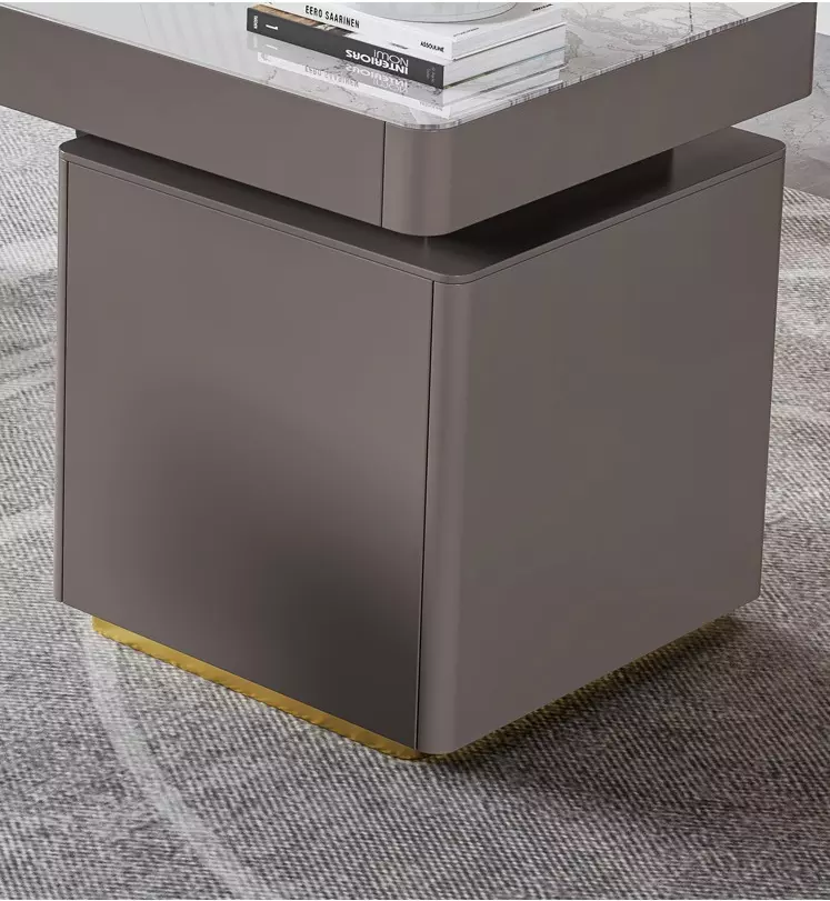 This luxurious Italian-designed office table exudes elegance and quality. Made of engineered wood and Roman beech, it features a sturdy metal base and a high-quality marble top. Available in three sizes, it comes in an elegant gray finish and comes with a two-year warranty against manufacturing defects, making it suitable for everyday use in modern work environments.