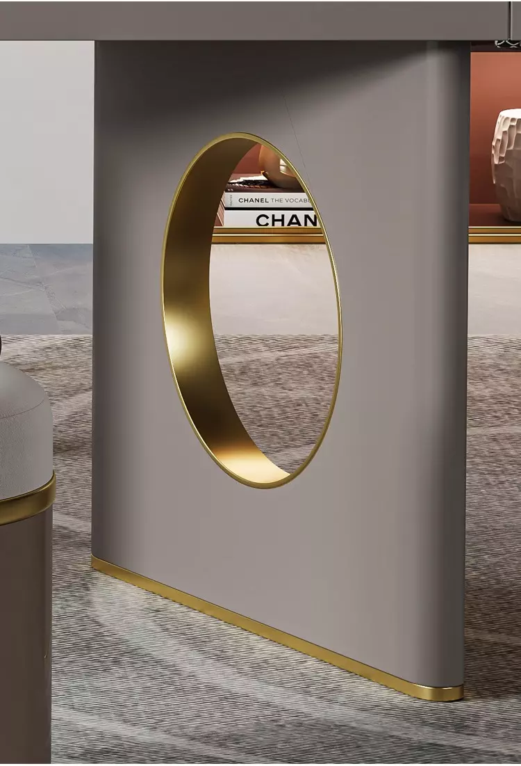 - ومو بس كذا وفرنا سطح المكتب مصنوع من الرخام الفاخر الذي يمنح التصميم لمسة عصرية جذابة تبيض وجهك امام عملائك وتخليك غير.