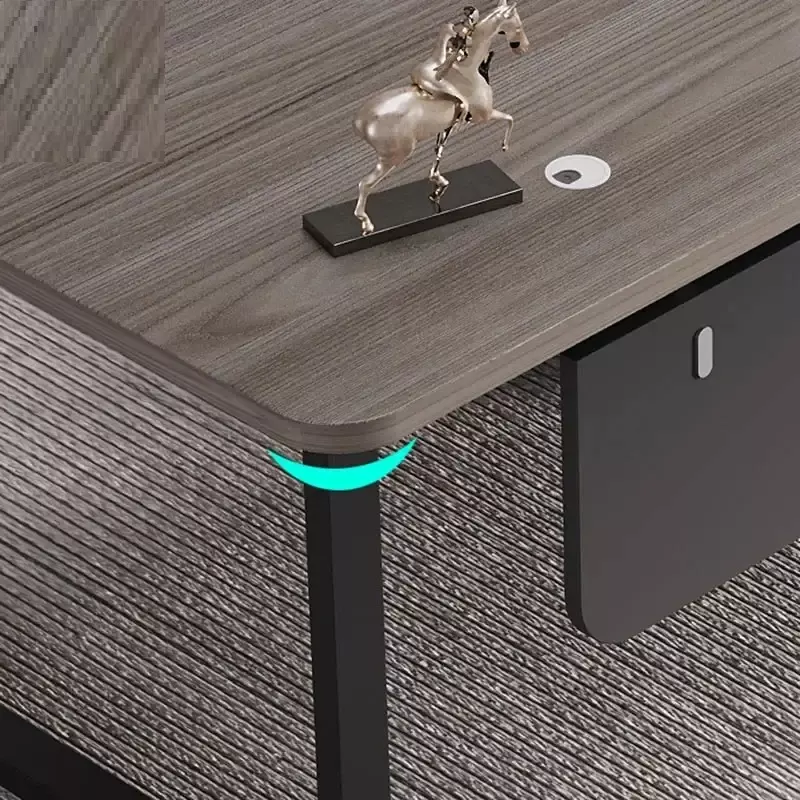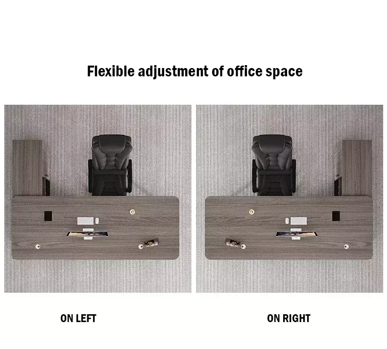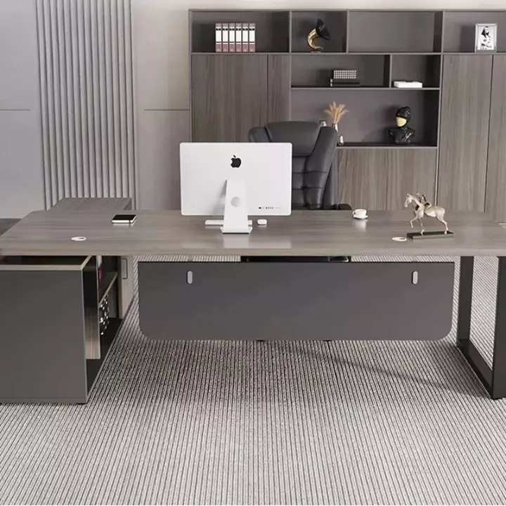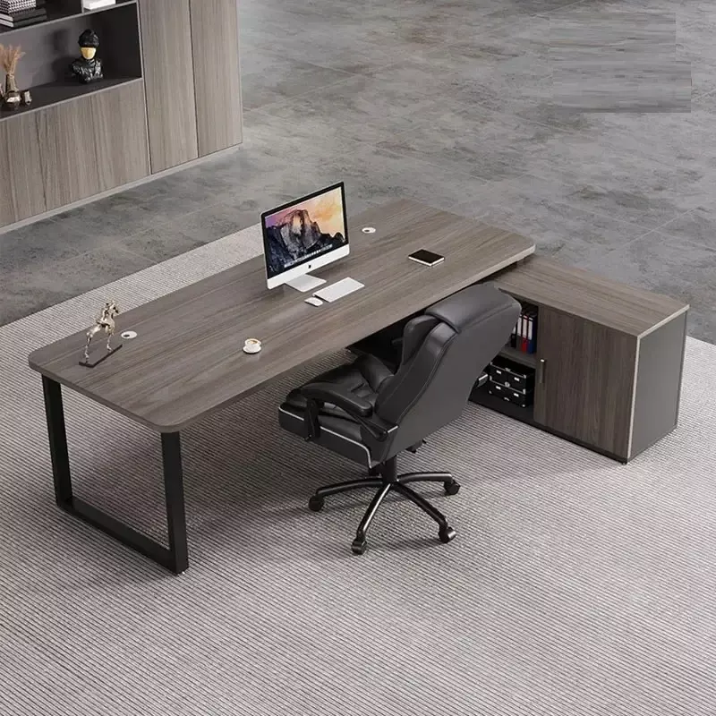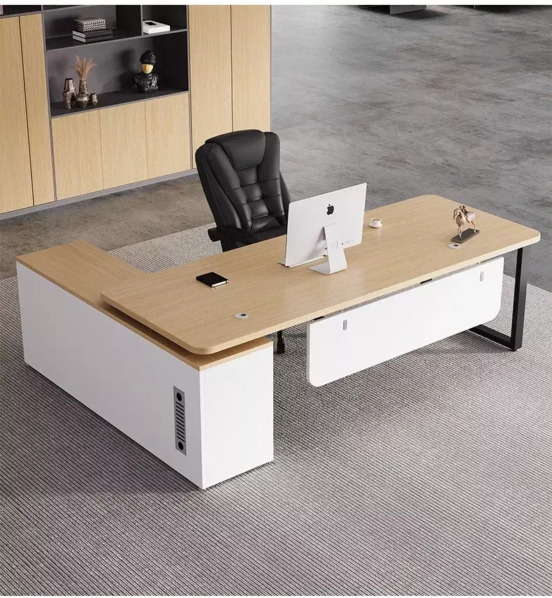 A wooden desk with a side cabinet and distinctive drawers. Here's a wooden desk from the distinguished Master Room store, featuring a modern design and high-quality materials, providing a comfortable and efficient work experience.
