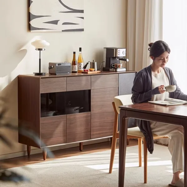 ركن قهوة أنيق بتصميم شفاف وتنظيم عملي، مناسب لغرفة الطعام ويتميز بسهولة العناية اليومية ولمسة ترتيب واضحة للمكان.