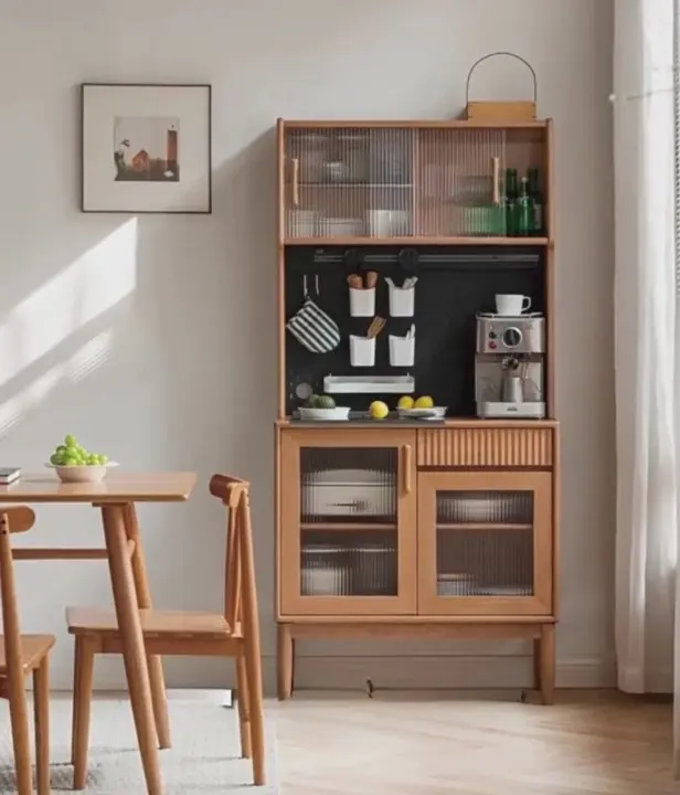 كوفي كورنر عملي بتصميم عتيق يمنح غرفة الطعام تنظيمًا أنيقًا لركن القهوة، مع استخدام يومي مريح وسهولة في العناية والتنظيف.