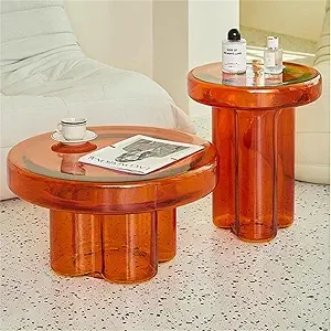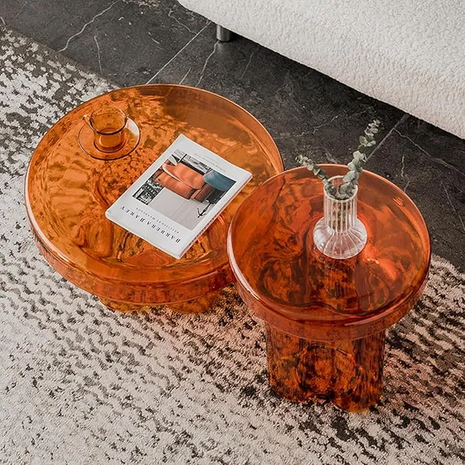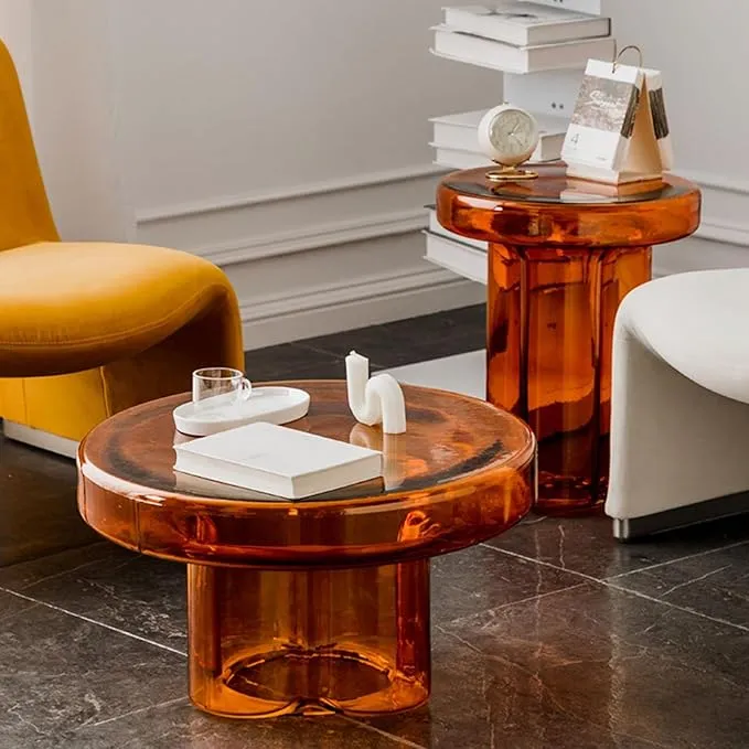 طاولات قهوة دائرية زجاجية عصرية تمنح غرفة المعيشة مظهرًا أنيقًا ومتوازنًا، مناسب للمنازل الحديثة ، مع تصميم عملي ينسجم مع مختلف أنماط الديكور.
