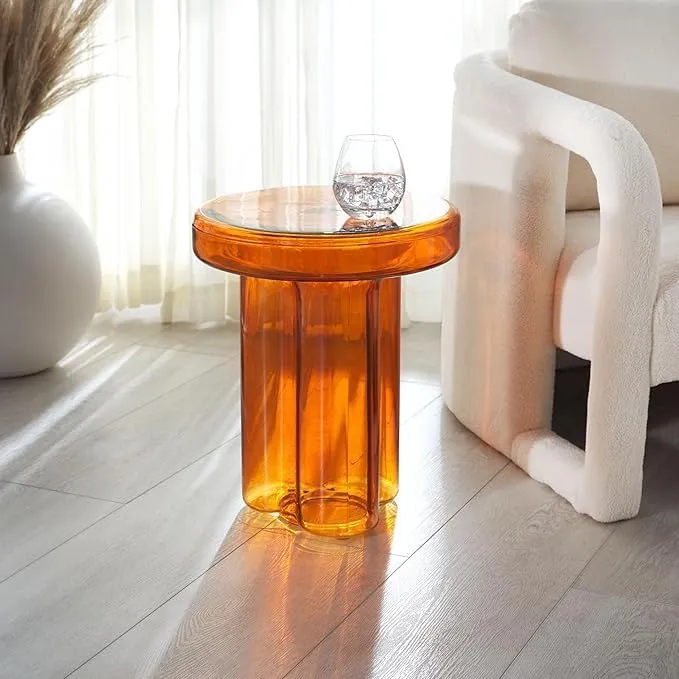 طاولات قهوة دائرية زجاجية مصنوعة من خامة الزجاج الفاخر القوي النقي عالي الجودة، ما يمنحه مظهرًا نقيًا وسطحًا سهل التنظيف والاستخدام. الزجاج المستخدم يعكس الضوء بشكل جميل، مما يساعد على تعزيز الإضاءة الطبيعية داخل غرفة المعيشة