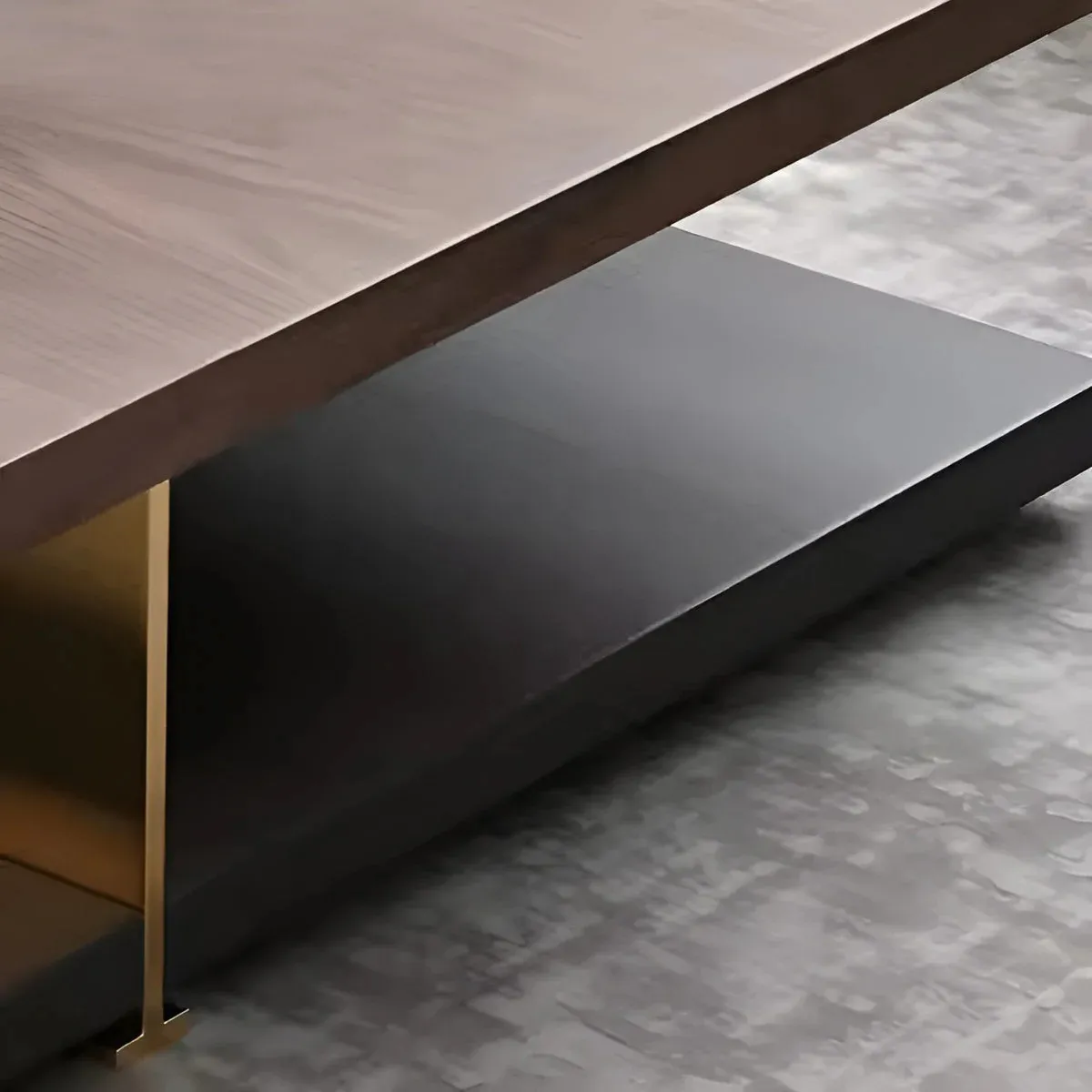 اللون الخشبي (لسطح الطاولة) والقاعدة ذات اللمسة الذهبية-السوداء،