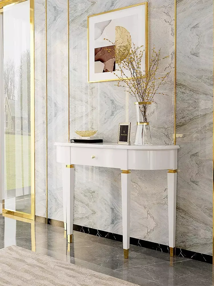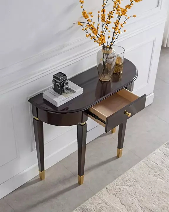 This elegant and sturdy wooden console adds a touch of luxury to any room or entryway. Made from high-quality engineered wood and Roman beech wood, it easily blends into modern home decor. It features a spacious surface for arranging decorations and collectibles. Available in two elegant colors, it's ideal for organizing small spaces and comes with a two-year warranty against manufacturing defects. It can be wiped clean, making it both functional and attractive.