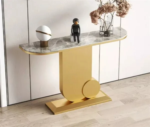 This elegant, modern entryway is crafted from sturdy metal and a luxurious marble top, adding a contemporary touch to your living room. With a simple and attractive design, it complements a variety of decor styles and comes with multiple color options for both metal and marble. It's easy to maintain and can be cleaned with a light wipe. Available in two colors: gold and black for the metal, and white and black for the marble. It comes with a two-year warranty against manufacturing defects in the GCC.