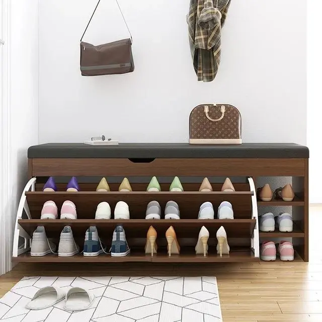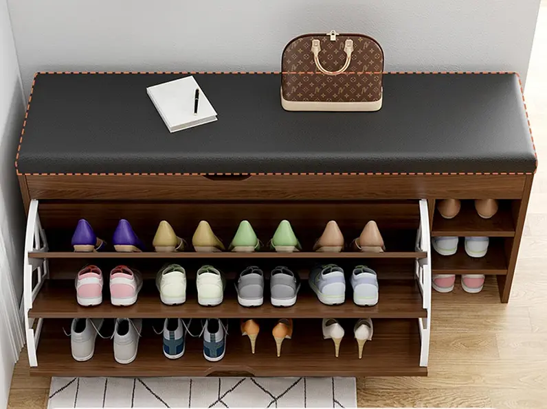 خزانة أحذية عملية للمدخل تساعد على ترتيب الأحذية بشكل أنيق مع مقعد مريح للاستخدام اليومي، مناسبة للمداخل المنزلية العصرية وتوفر سهولة في التنظيف والعناية.