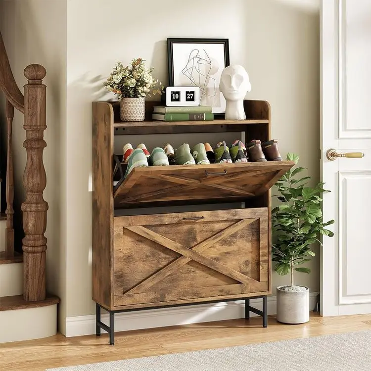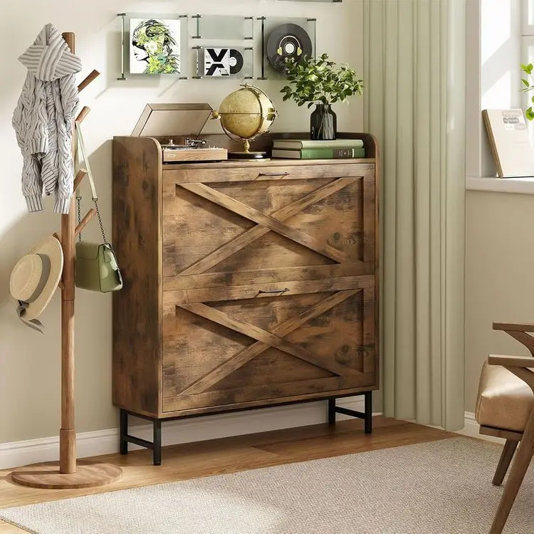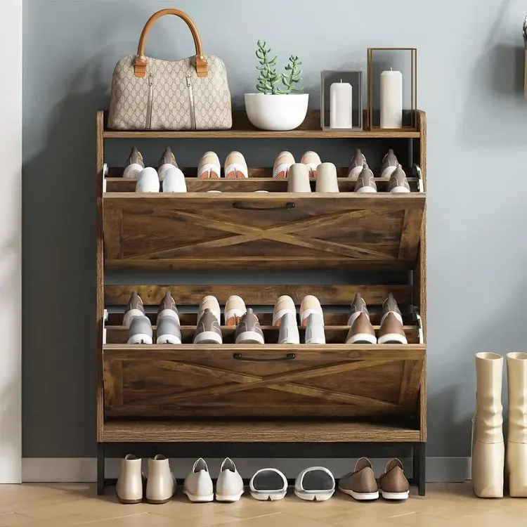 خزانة احذية بتصميم عتيق ينسجم مع المساحات الحديثة، عملية للتخزين اليومي وسهلة العناية، مناسبة للمداخل وغرف المعيشة في المنازل الخليجية.