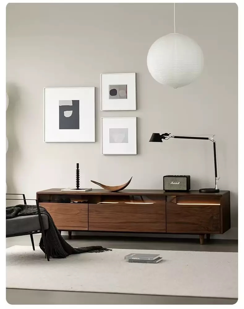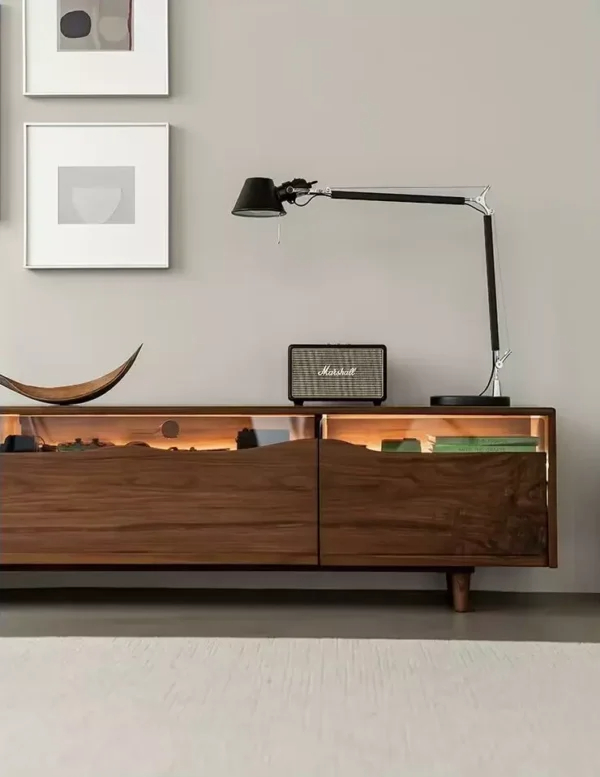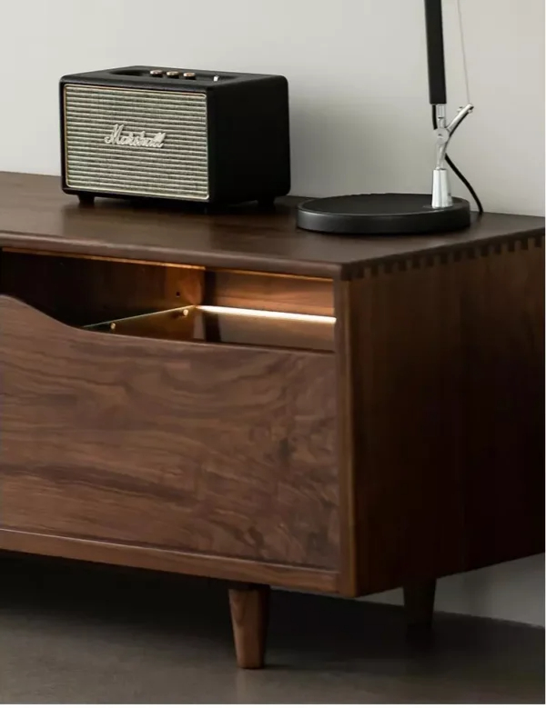 أبعاد مثالية بفضل طولها الكبير يسمح بوضع تلفزيون بمقاسات مختلفة بالإضافة إلى إمكانية وضع بعض الديكورات أو الأجهزة الإلكترونية بجانب التلفزيون بسهولة.