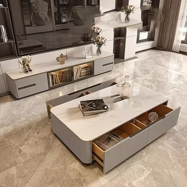 A marble coffee table made of high-quality materials is an essential piece of furniture in any living room. It provides a practical surface for serving drinks and snacks, and is a focal point that complements the decor of the place.
