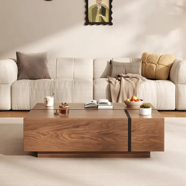 طاولة قهوة اسكندافي متعددة الوظائف من خشب هندسي وخشب زان روماني عالي الجودة والخيزران قابلة للطي والتحول إلى طاولة طعام كبيرة، مع مساحة تخزين إضافية بتصميم يوفر المساحة في منزلك.