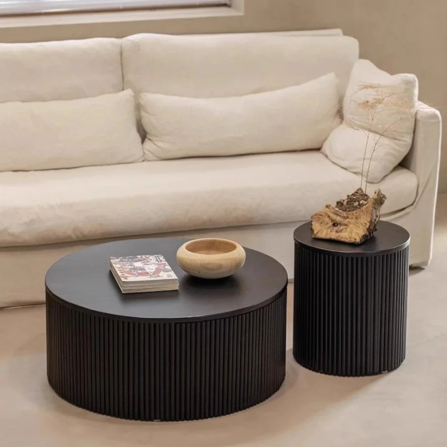 توفر طاولة القهوة الدائرية مساحة جمع وتوزيع مثالية في الصالة، مما يجعلها خيارًا رائعًا للأماكن الضيقة أو لتنسيق مجموعات الجلوس.