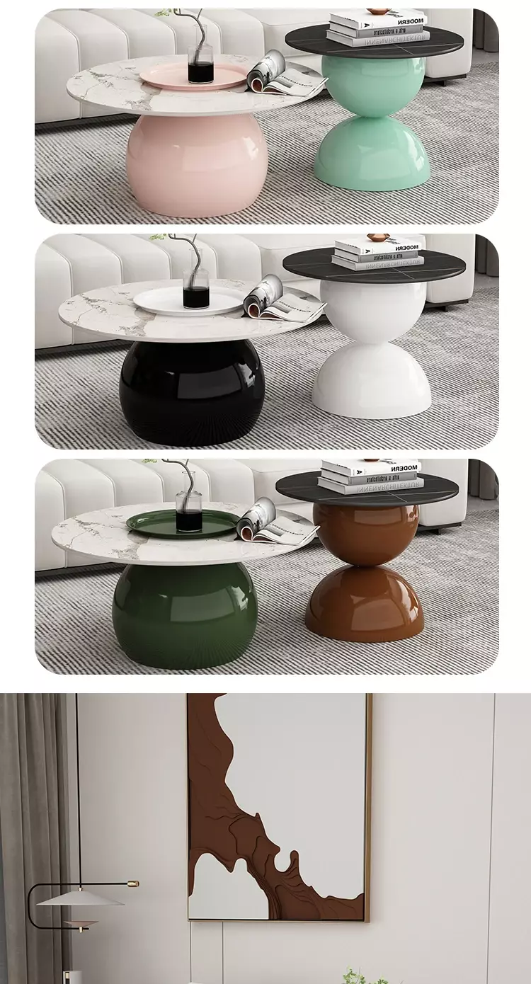 A marble coffee table is an elegant and functional piece for any home. The circular table adds aesthetic appeal to the living room and reflects refined taste. Its frame features sturdy, high-quality metal, making it durable and long-lasting. Additionally, the high-quality marble surface provides a luxurious look and is easy to clean. It comes in a variety of sizes to fit different spaces and is available in a variety of colors to suit any decor.