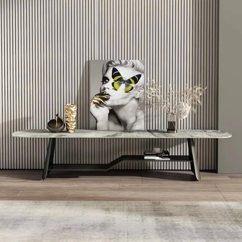 طاولة تلفزيون رخام تجمع بين الفخامة والرقي بتصميمها المودرن ولونها الراقي لتضفي أناقة وتنظيم مثالي على غرفة المعيشة.