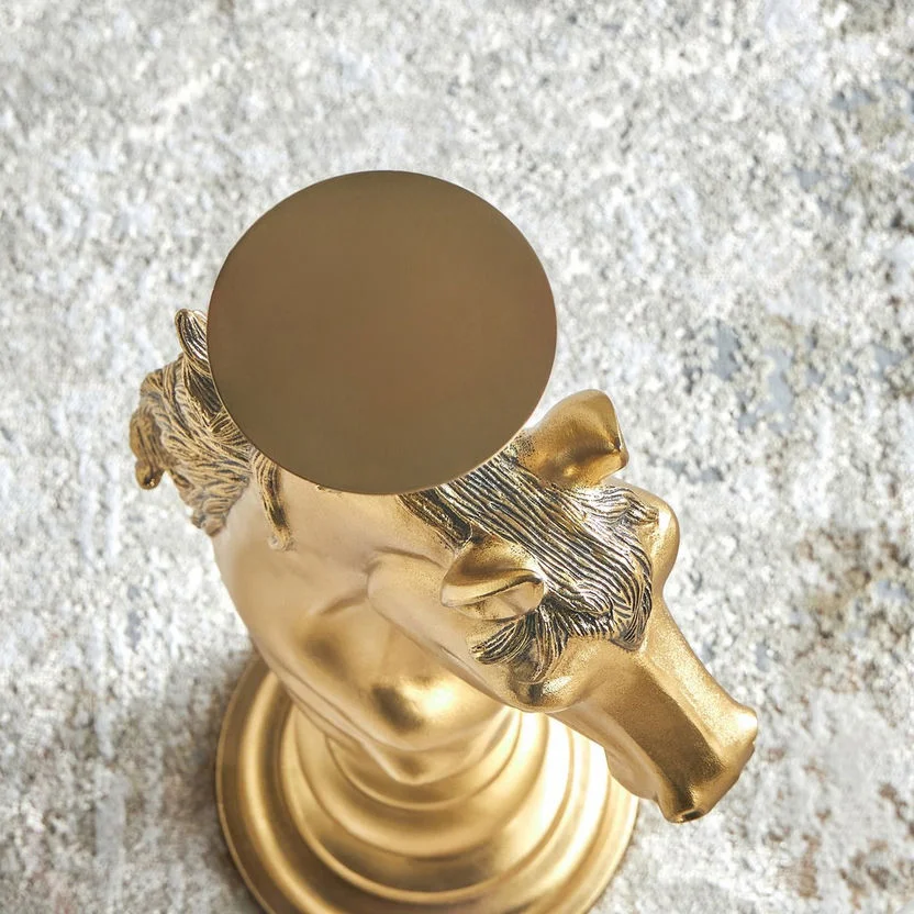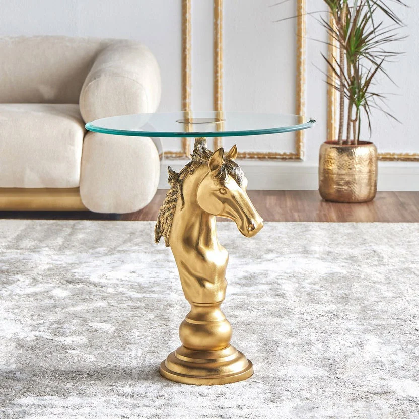 This horse-shaped side table comes in a gold finish that adds a touch of luxury and elegance to any decor.